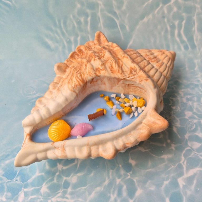 Muschel Kerze im Alabaster-Gips Halter